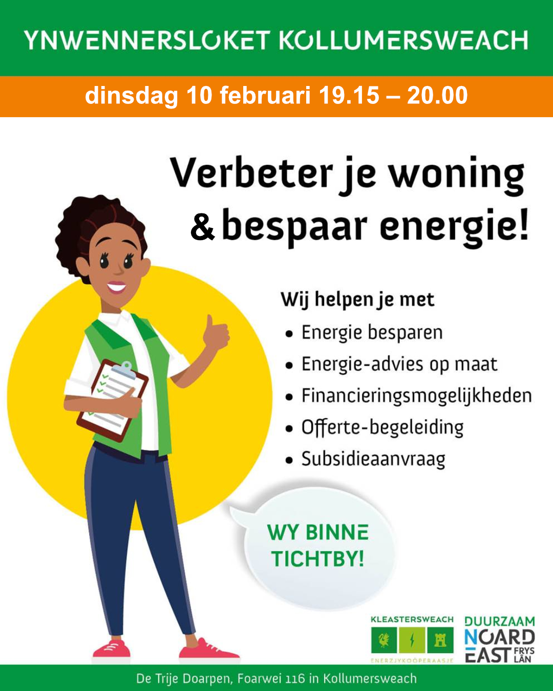 ๐ Elke eerste dinsdagavond van de maand staat het Ynwennersloket in Dorpshuis De Trije Doarpen voor je klaar โ jouw korte lijn naar de Enerzjykooperaasje Kleastersweach en de gemeente Noardeast-Fryslรขn. Februari is bloeimaand en is het ynwennersloket elke dinsdagavond geopend. Je bent op 3, 10, 17 en 24ย februari van harte welkom tussen 19.15 & 20.00 uur in Dorpshuis De Trije Doarpen. Zien we je dan?