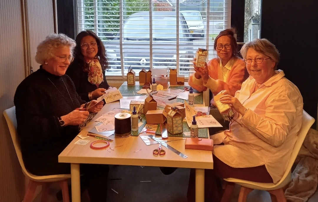 Het Kaartfabrykje organiseert de hele week ook leuke workshops, deze middag cadeau doosjes maken.