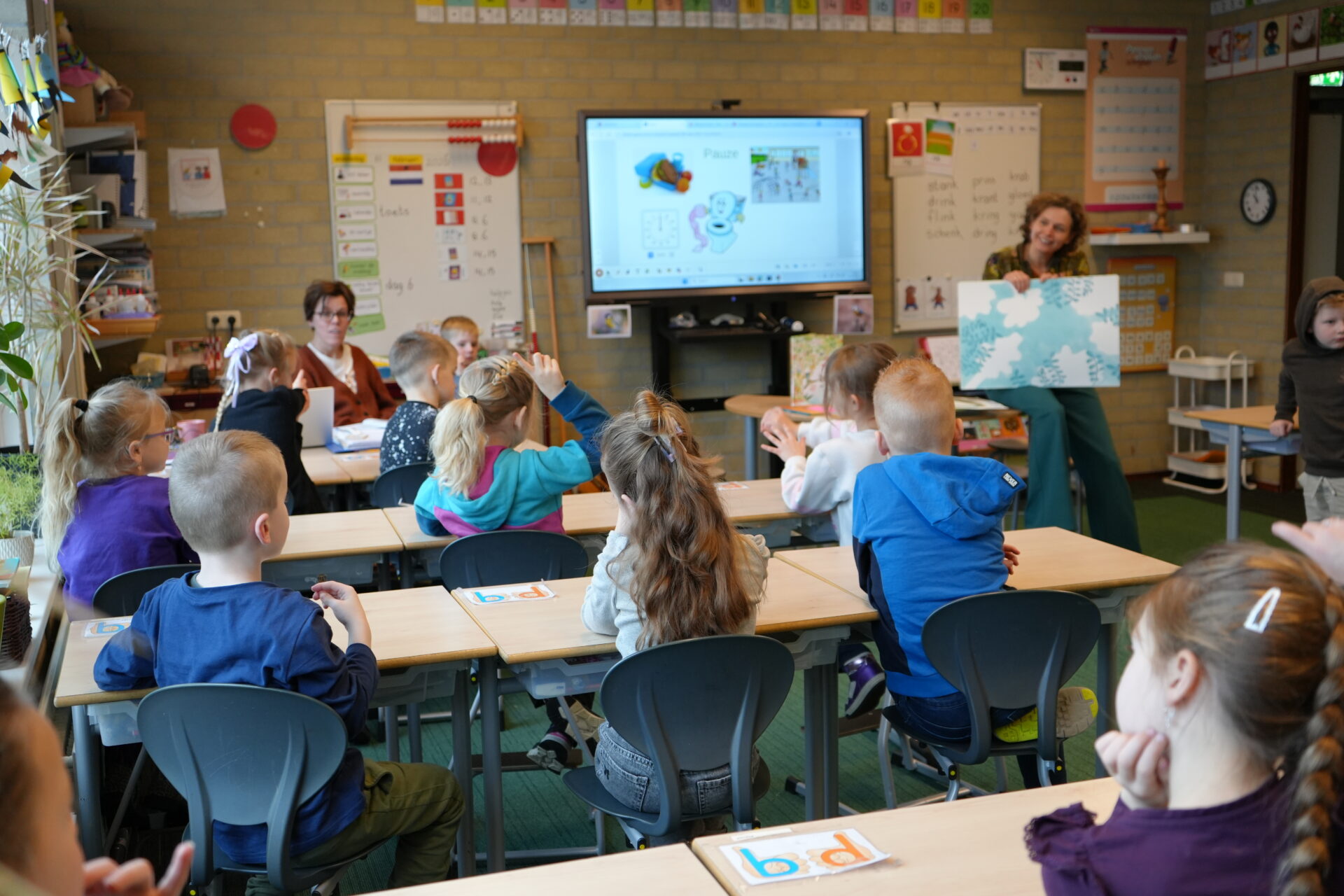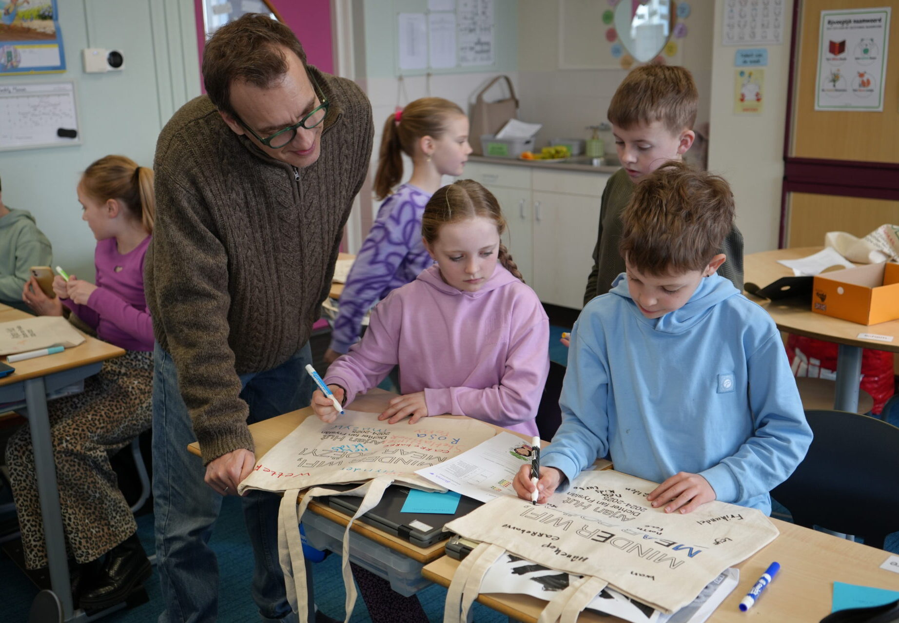 Fryske Dichter Arjan Hut in groep 6 op de Stapstien. Foto Studio Therèsa