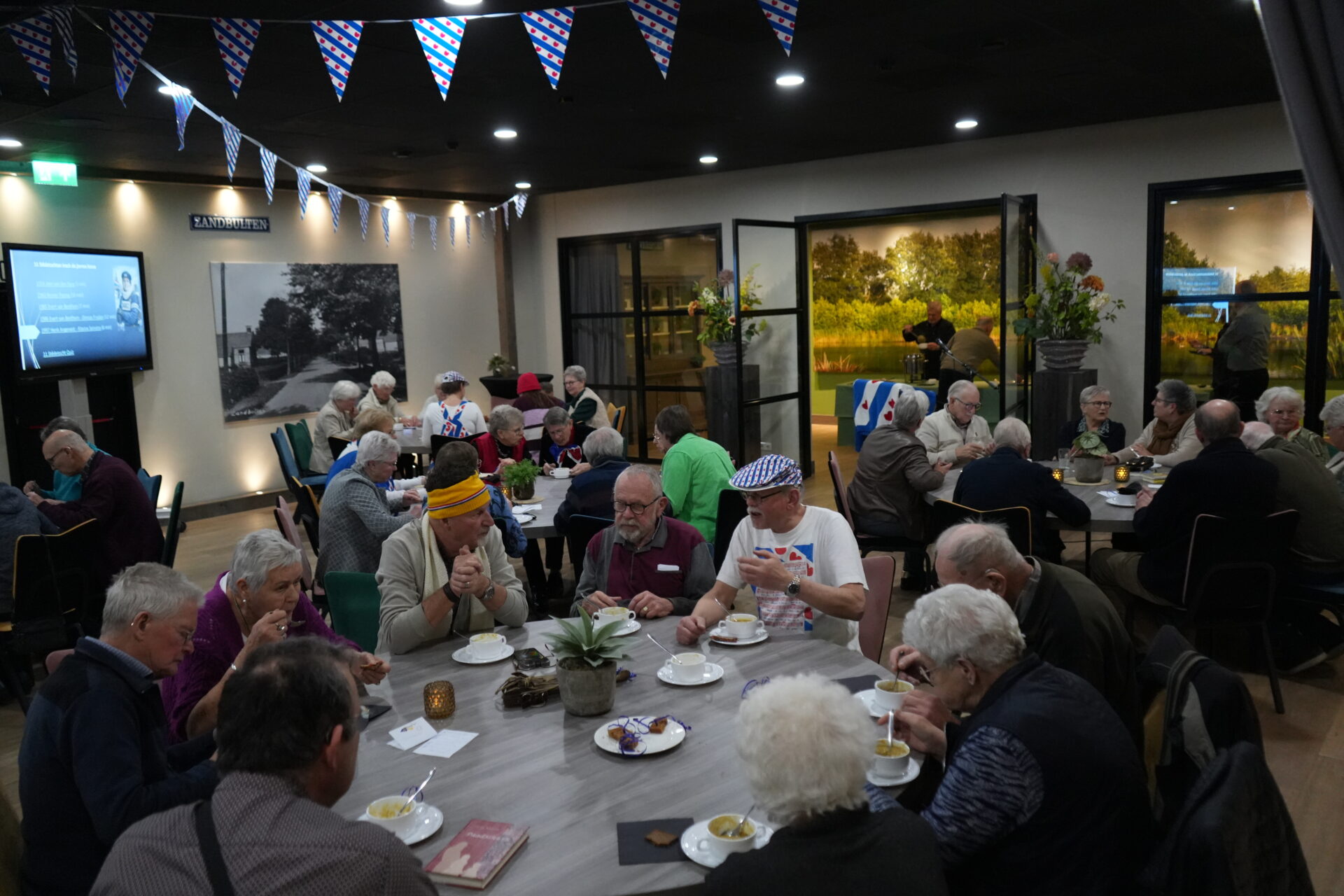 Woensdagmiddag was er de 55+ middag met als thema de Elfstedentocht, keken we oude beelden terug, deden we een quiz en aten we heerlijke snert. Foto Studio Therèsa