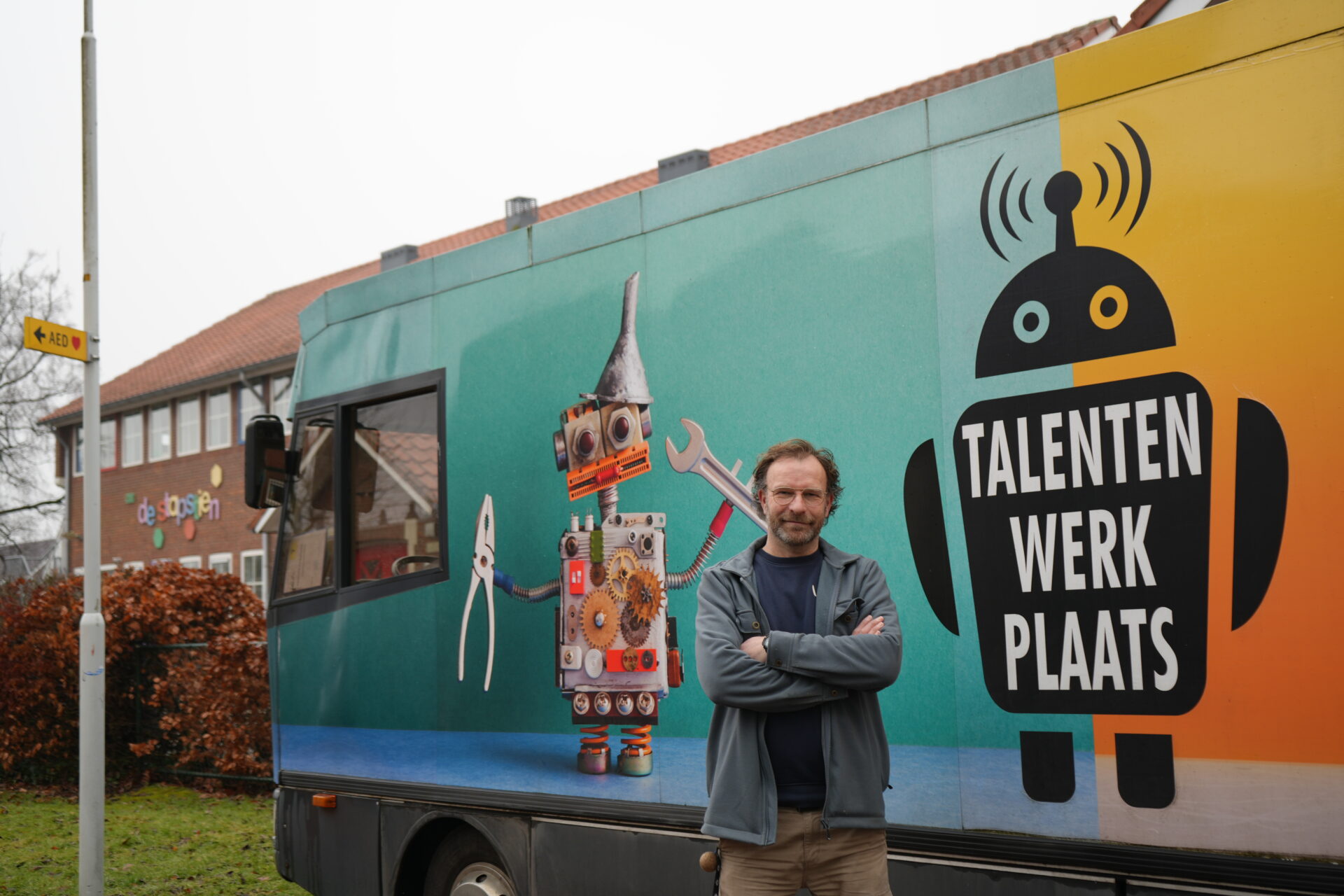 Coen van de Talentenwerkplaats bezocht vandaag groep 2 en 3 op de Stapstien en maakte leuke timmeropdrachten met de kinderen. Foto Studio Therèsa